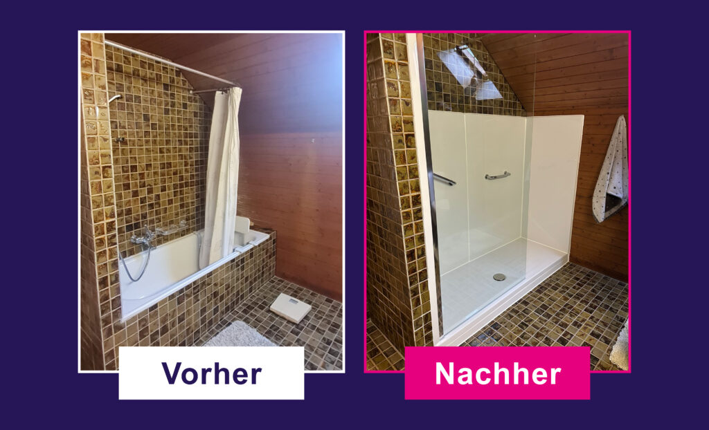 Sie möchten lieber eine Dusche, haben aber aktuell eine Badewanne in Ihrem Bad? Das Duschen in der Wanne ist Ihnen zu umständlich, und der sichere Ein- und Ausstieg wird zunehmend schwieriger? Dank unserem einzigartigen Umbausystem können wir Ihre Badewanne in nur wenigen Tagen durch eine moderne, leicht begehbare Dusche ersetzen.