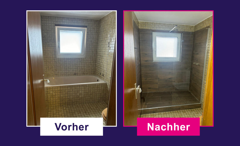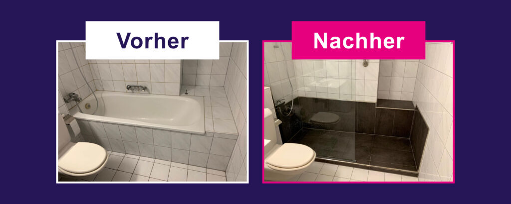Der Umbau erfolgt sauber, mit minimalem Schmutz und ohne Schäden an bestehenden Fliesen oder dem Boden.