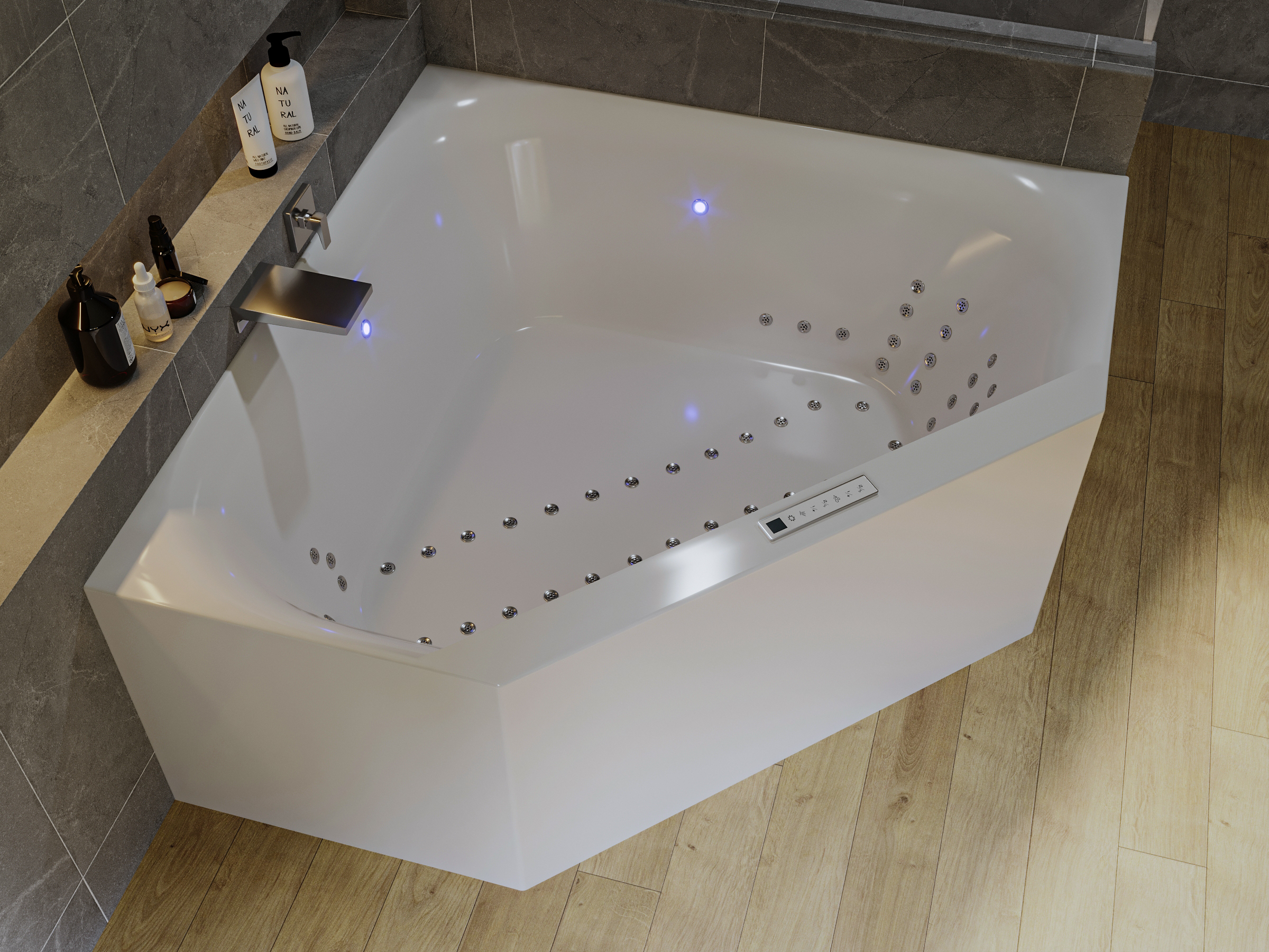 Einbauvariante: Eck-Whirlwanne mit nahtloser Verkleidung
